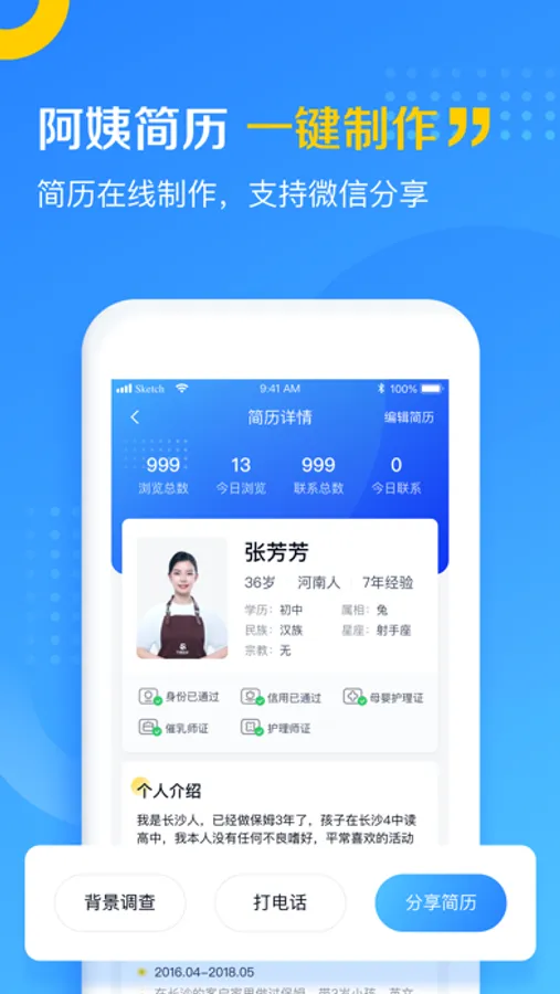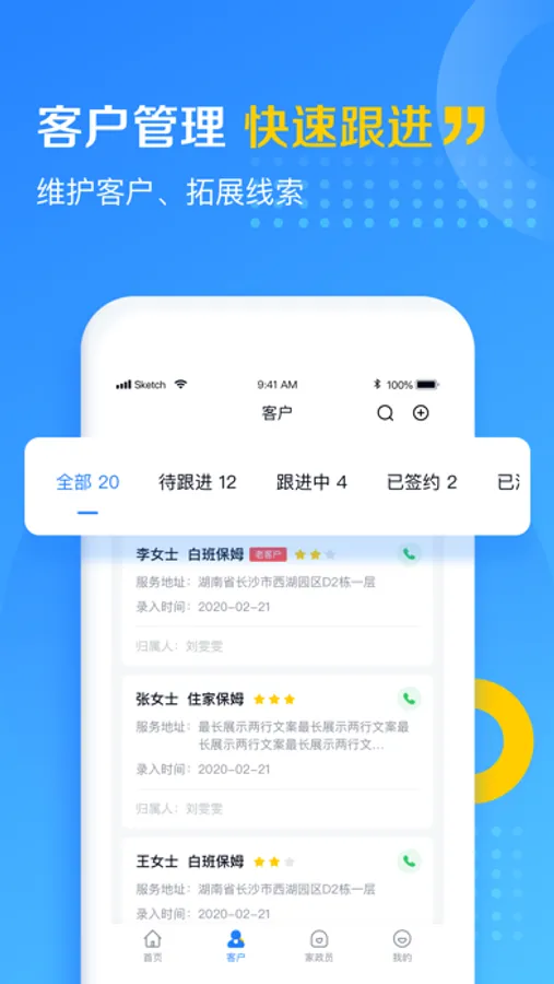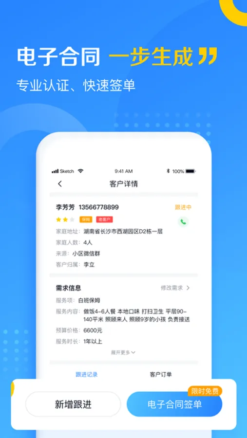 美田云系统,总部位于北京,创始团队来自天鹅到家、腾讯、阿里等互联网公司。是一款专注面向家政公司的SaaS管理工具,支持客户管理、家政员管理、家政员信用查询、电子合同签单、分享阿姨图片简历、员工管理等丰富功能;(换行)我们支持家政中介、保洁、母婴月嫂、产后修复等业务类型的门店。以互联网技术为优势,整合行业家政资源,为家政公司提供全方位的赋能。
