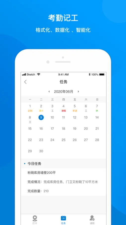 人脸识别,一键打卡,每日任务智能推送、工资统计一目了然,激发工人的多劳多得,告别线下传统复杂的考勤统计模式,咔咔在手,考勤数据实时可查!