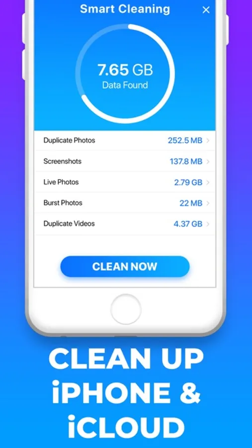 Running out of space because of too many photos or junk files? You need an iPhone cleaner that's fast, easy to use, and great at clearing your cache and organizing apps. With just a few taps this powerful phone cleaner will find similar photos, large media, and other junk files, then give you the option to clean and delete them from your storage. It's that fast!