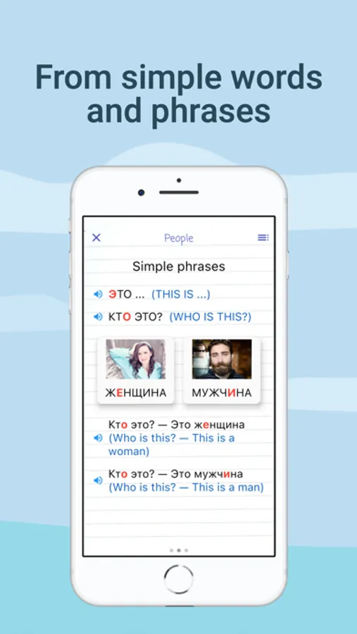 Each lesson includes multiple tests that help you monitor your progress and verify your knowledge of Russian language. There are tests for listening comprehension, grammar knowledge, typing Russian words, etc.
