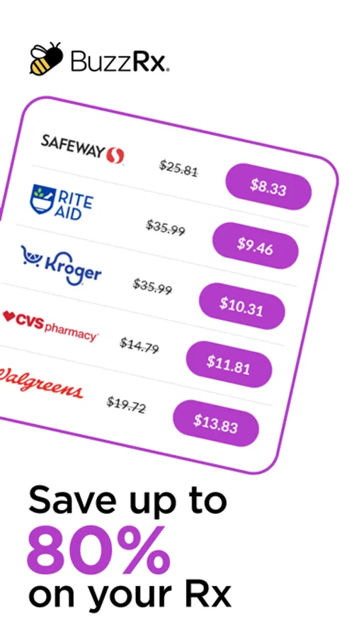 Use the BuzzRx® App to find up to 80% savings on your prescription medications and vaccinations!