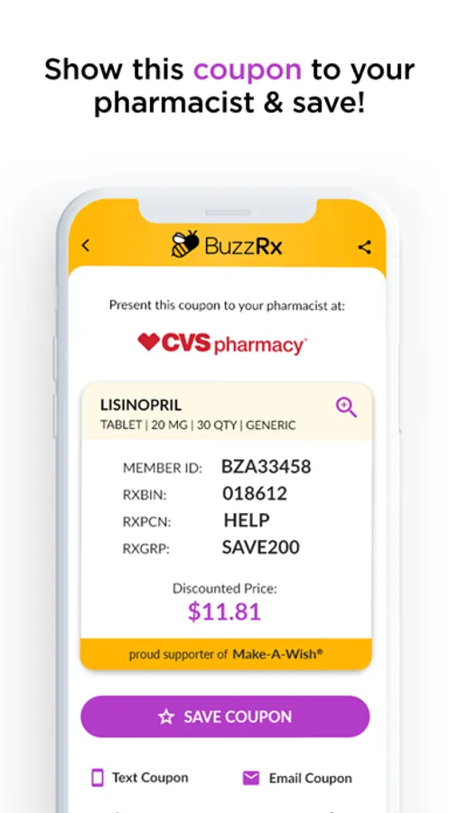 BuzzRx is accepted at over 60,000 pharmacies nationwide, including but not limited to CVS pharmacy, Walgreens, Rite Aid, Kroger pharmacy, Walmart Pharmacy, and more! You can also help BuzzRx make a difference in your community! When you save, BuzzRx donates money to charities like Make-A-Wish®, the ASPCA, and the National Kidney Foundation at no cost to you. Help BuzzRx help others while you still get a good rx deal!