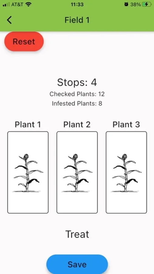 This application will help determine if a grain sorghum field needs to be treated with insecticide from an infestation of sugarcane aphid. Users will choose a treatment threshold based on control cost, treatment cost, and sorghum variety resistance. The sampling consists of checking two leaves, on three separate sorghum plants per stop, until a decision is made.