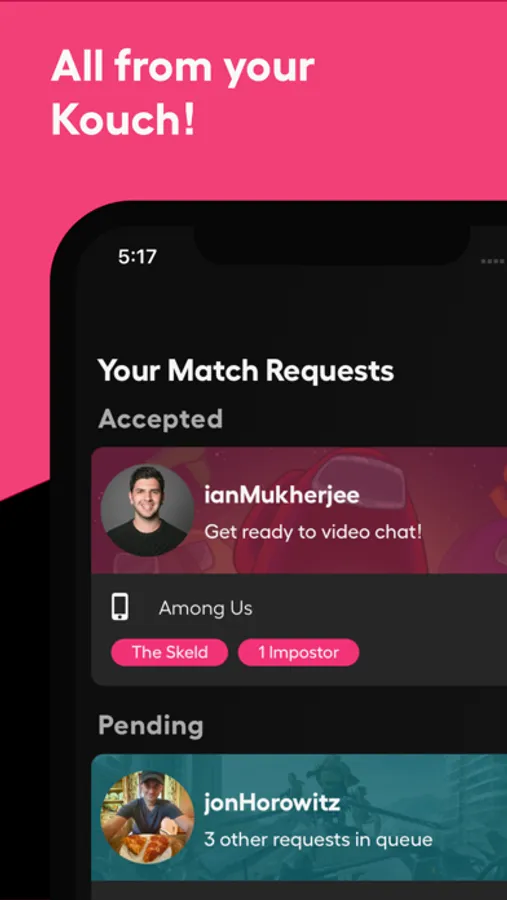 Kouch allows you to see what games celebrities are playing and play with or against them. Games include Call of Duty, Fortnite, NBA 2K, FIFA, Madden and more. Each celebrity chooses what games they are playing so that you can bond over the mutual love for the game.