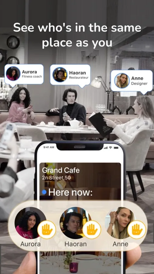 — choose which cafes, gyms, cinemas, etc. have the most users now and it will be easier to find business contacts and friends;