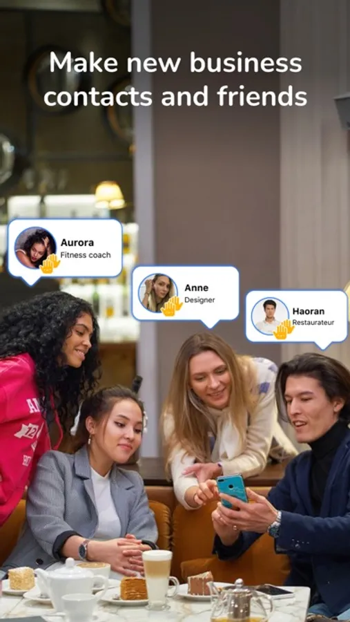 — don't forget to exchange contacts in one click without any typing or QR codes. The data will be saved to your phone's contact list.