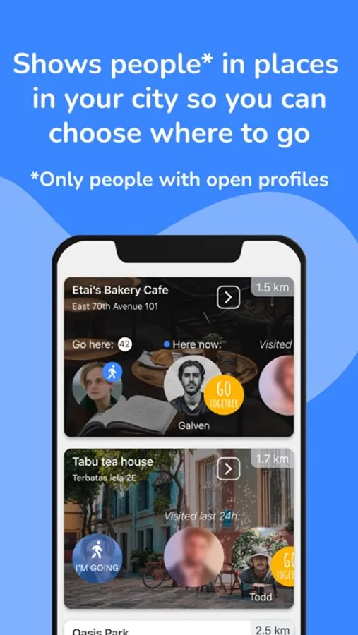 — invite people with open profiles to go together - just click “Let's go together” on the profile of someone interesting;