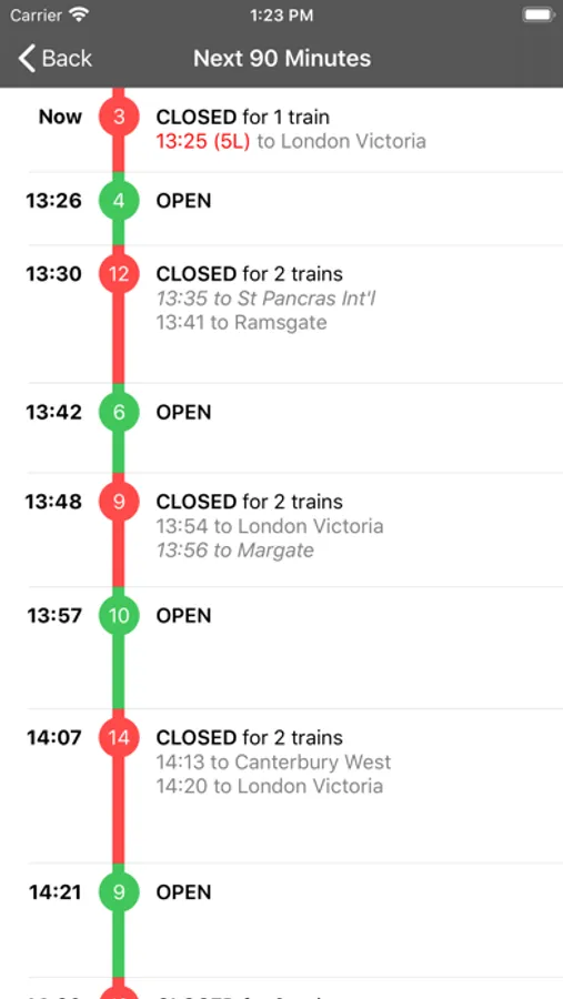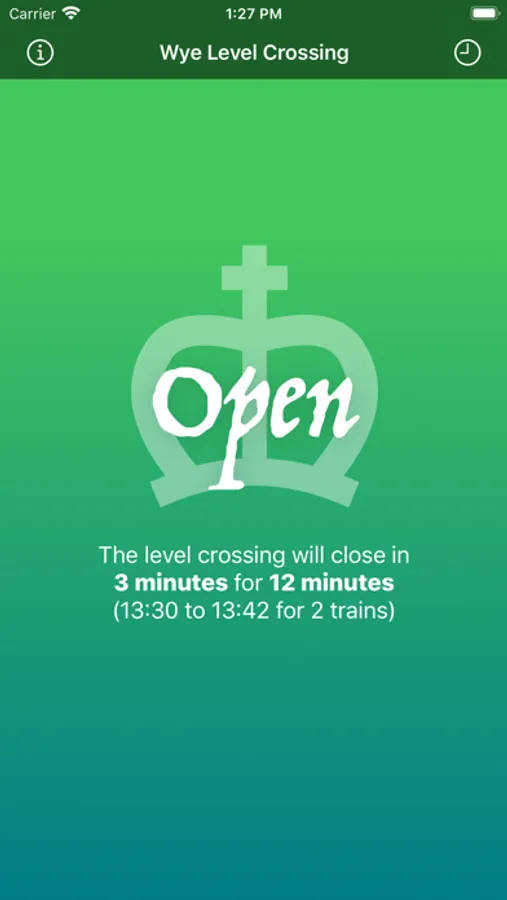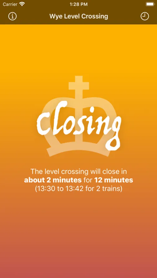 This app uses train passing data to work out when the level crossing in Wye, Kent, UK will be shut (assuming it's closed from 5 minutes before to 1 minute after each train), helping you avoid waiting for up to 20 minutes in the queue for it to open.
