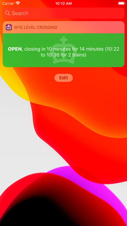The app includes a widget that you can add to your Lock screen. Just press and hold on the app icon and click "Add Widget", or swipe over the Home screen, scroll down and press "Edit" to view a list of widgets you can add. You can then see the status of the level crossing by swiping right on the Lock screen without unlocking your iPhone. Useful for a quick check before setting off!