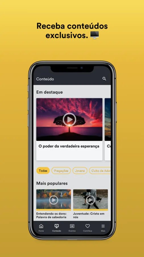 - Siga a agenda e fique por dentro de tudo que acontece na igreja, inscreva-se em eventos e tenha seus ingressos sempre com você.