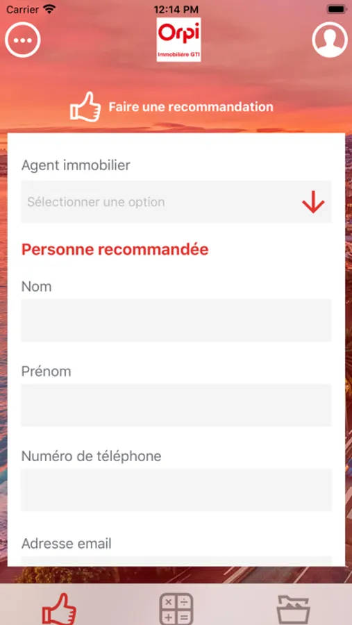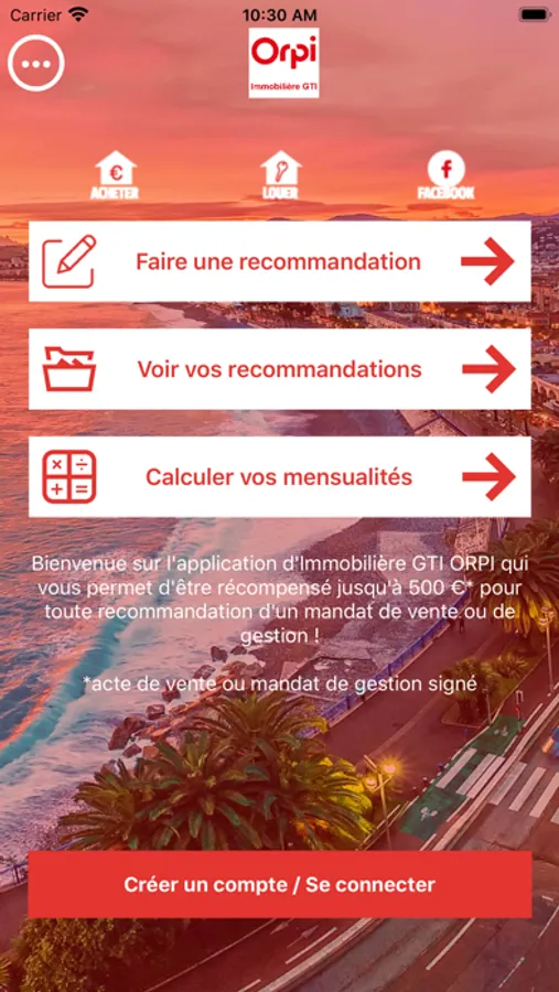 Grâce à l'application Orpi Immobilière GTI vous allez à la fois pouvoir faire une recommandation d'un ami, voisin, famille, etc à l'agent immobilier de votre choix, mais également pouvoir calculer vos mensualités de remboursement de votre crédit immobilier.