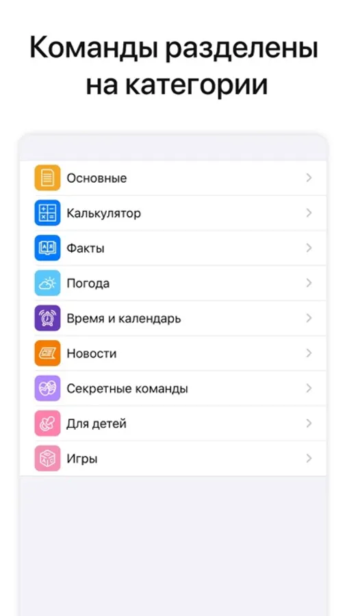 Справочное приложение с полным списком команд для голосового помощника МТС Марвина, команды разделены на категории.