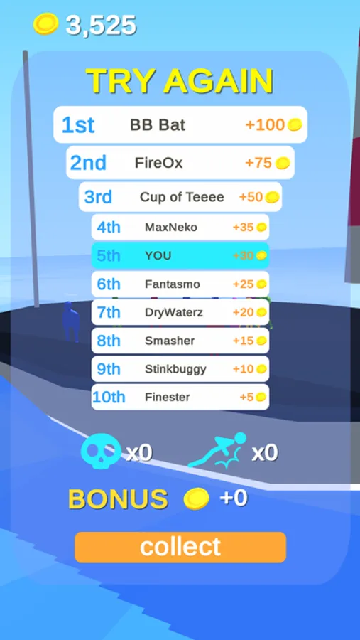 + Shoot others at ropes to earn extra coins at the end of each race.