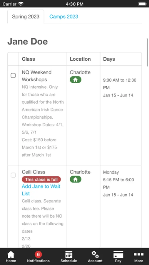 - Have a class in mind? Search by program, level, day, and time. You can register or even put yourself on a wait list.