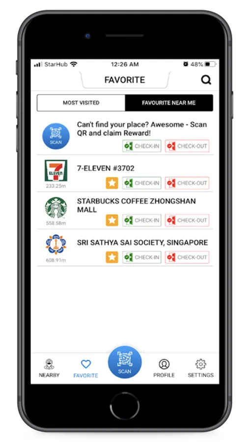 A convenient and easy way to use QR & Browser based Safeentry for Check-in and Check-out.