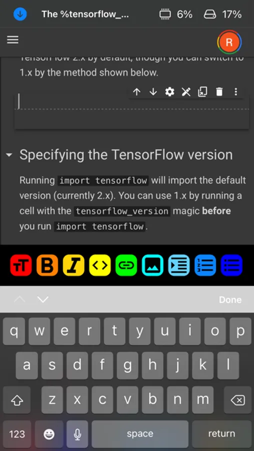 - Markdown toolbar, automatically recognizes when a text cell is being edited