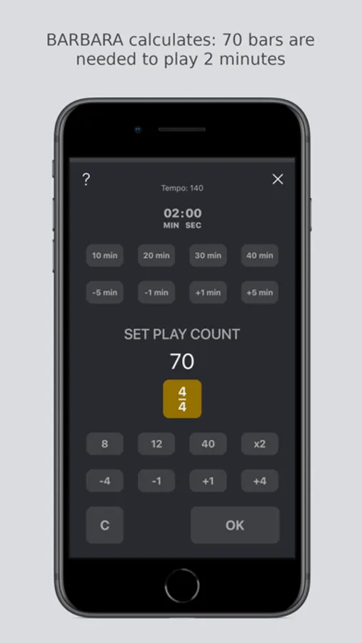 BARBARA will store the sequences of bars that you create. You can name your sequences and play them later. The metronome app contains many demo sequences that will help you to learn how the metronome can be used.