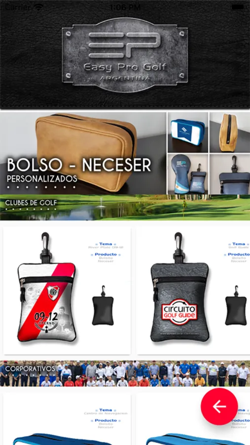 Productos: Porta Tarjetas de Golf, Fundas de Maderas y Putters, Toallas de Golf, Bolsos y Neceser, Pelotas con logo personalizados, Levanta Piques, Marcas, Tees, Lápices, Pelotas Vice Golf, etc.