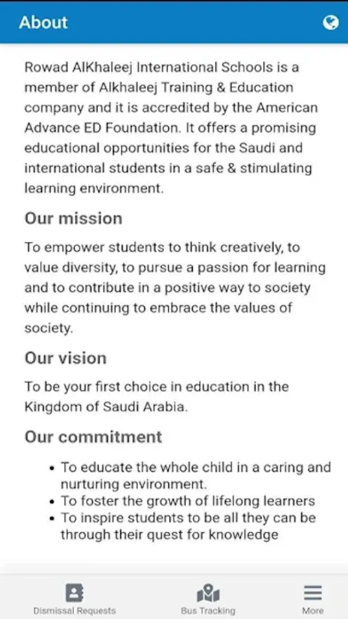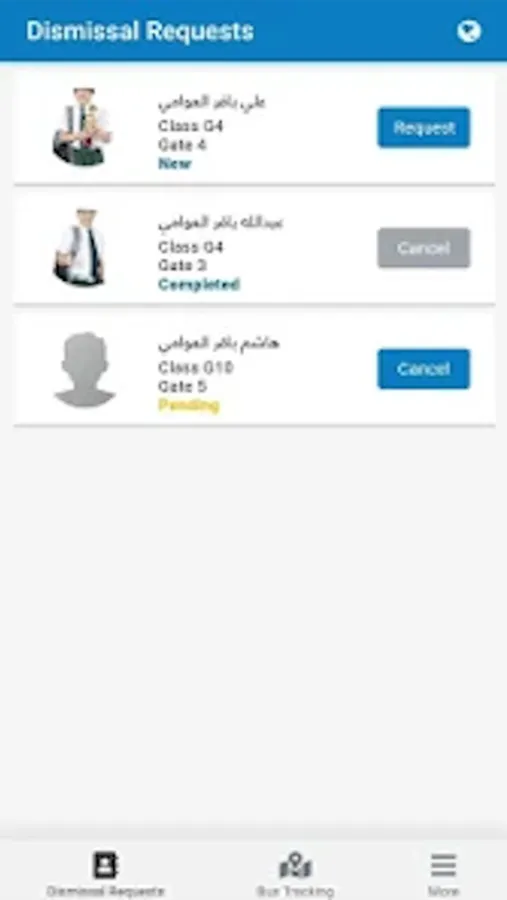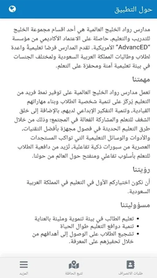 This application offers a service for students’ parents to follow their sons and daughters during their transportation by school transport buses and to ensure their safety. In addition to use a dismissal request during the official school hours, because the school’s administration is keen to provide the utmost safety and security for its students while they are inside the school yard or school transport buses.
