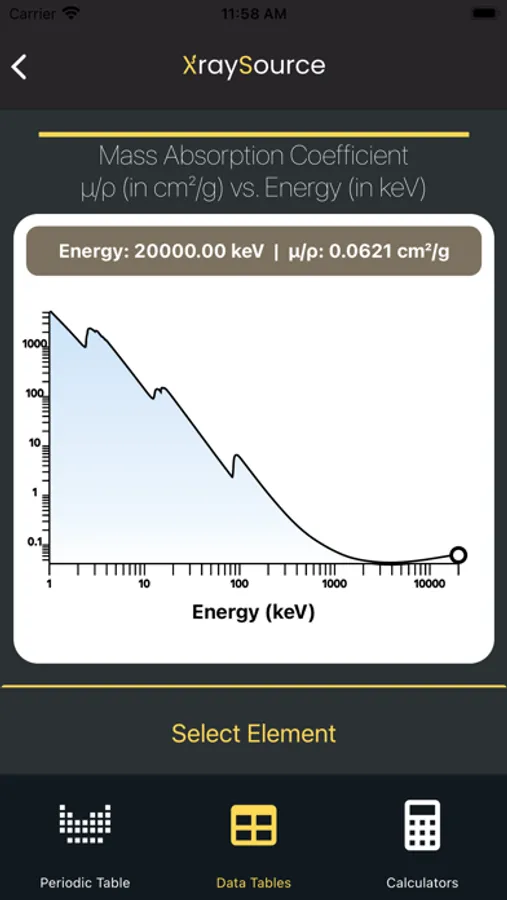 - Absorption tables: Mass-attenuation coefficients by element, as a function of photon energy as reported in the X-ray Data Booklet of the Lawrence Berkeley National Laboratory