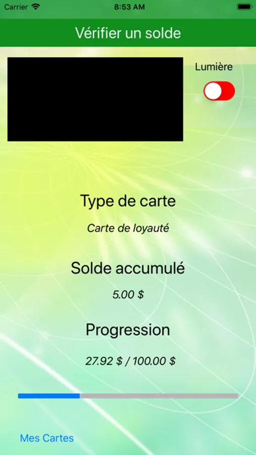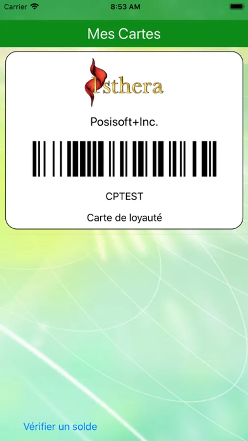 Vérificateur de solde de carte cadeau et/ou carte fidélité reliée au systèmes InformaStock et Isthera. Simplement scanner le code barre de la carte et l'information pertinente s'affichera.