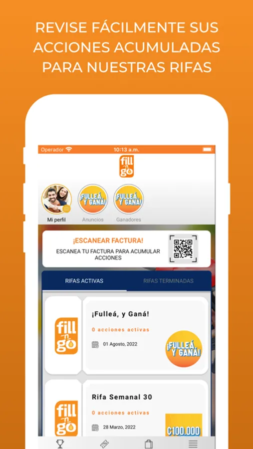 Con Fill n Go App puedes dar seguimiento a las acciones electrónicas que acumulas al visitar nuestros centros de servicio. Puedes conocer todos los detalles de nuestras rifas usando el app.