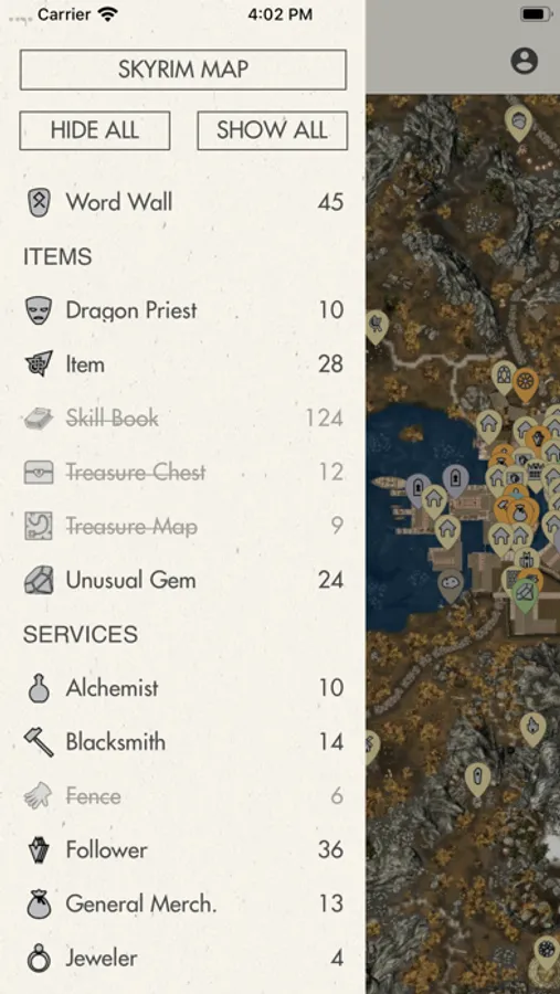 • Sync progress with the website: https://mapgenie.io/skyrim