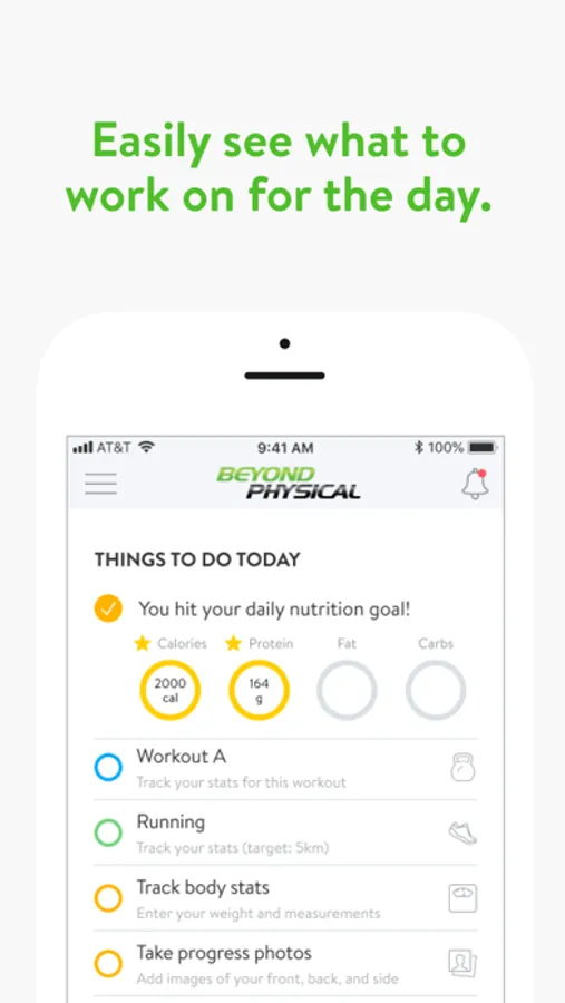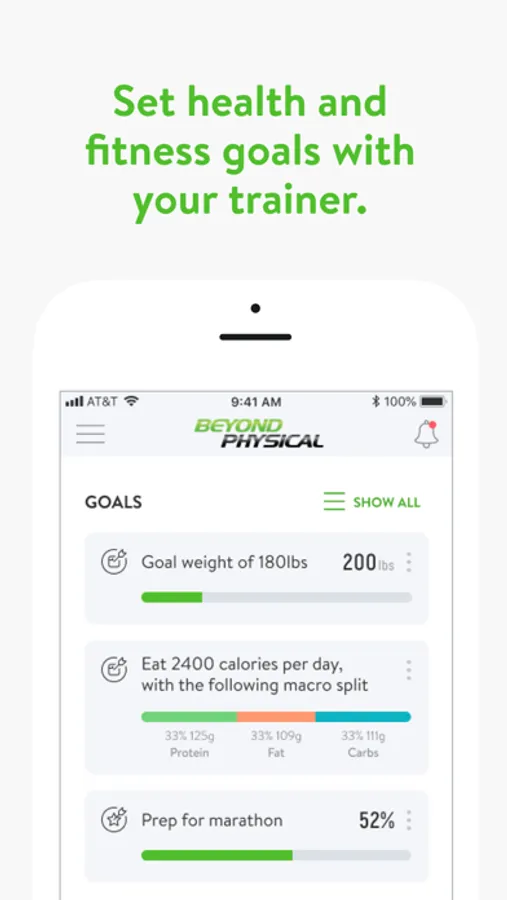 With the Beyond Physical App, you can start tracking your workouts and meals, measuring results, and achieving your fitness goals, all with the help of your personal trainer.