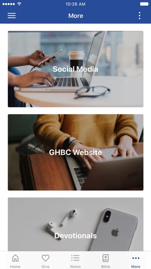 The GHBC app is packed with powerful content and resources to help you grow and stay connected with the church. With this app you will be able to: