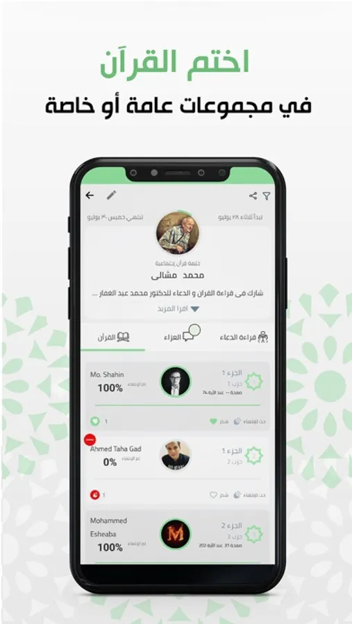 The first Islamic app that allows people to read the Quran together and create and manage Khatma in a very simple way. We want people to help and encourage each other to read Quran more. The app will allow you to easily create and share Khatma with your loved ones, it also includes different ways to display the Quran such as Page view or Ayah view to provide you with the best way you can read Quran on the phone without the need for internet. You can also create groups to compete in finishing and memorize Quran, read and listen to supplications (including Hizb el Shazly), listen to your favorite reciters, participate in live audio sessions (we call it circles). Listen to Quran radio channels in a socially interactive way