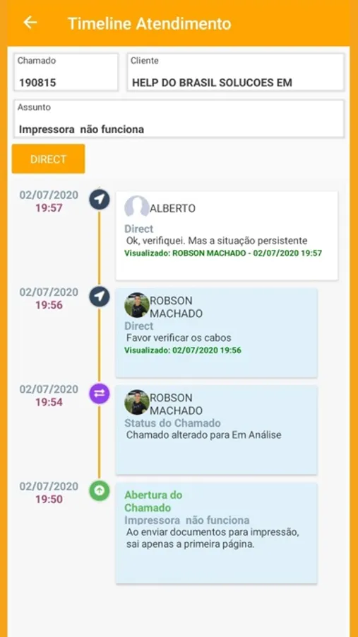 Possui interação do chamado entre o técnico e usuário de forma rápida e segura para soluções dos problemas de TI, além de base de conhecimento.