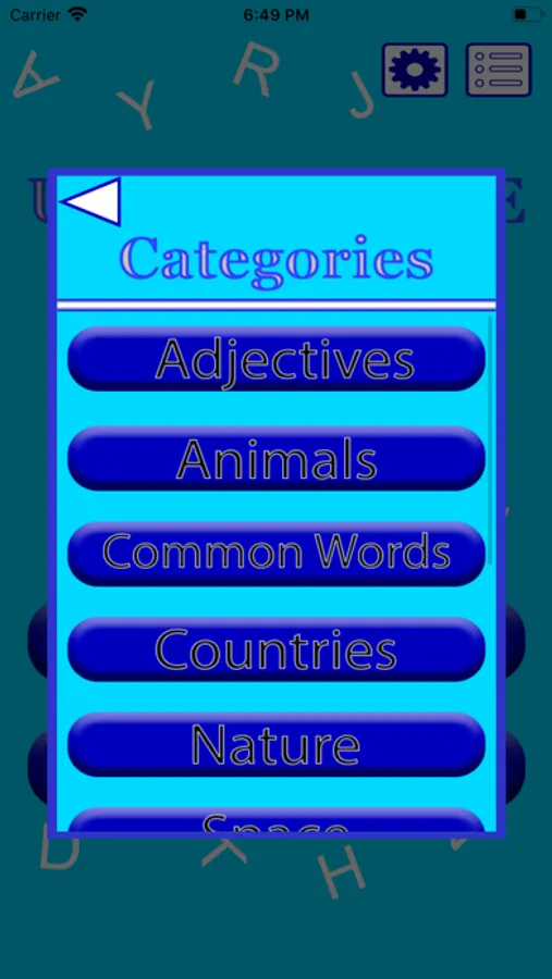 Pick from a variety of categories to satisfy your niches! You can pick from adjectives, animals, common words, countries, nature, or space(four more with an in-app purchase bundle!)!