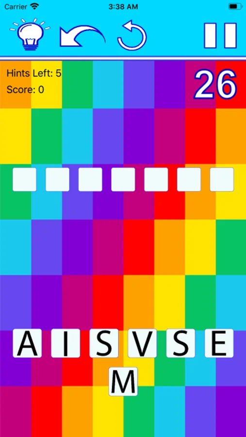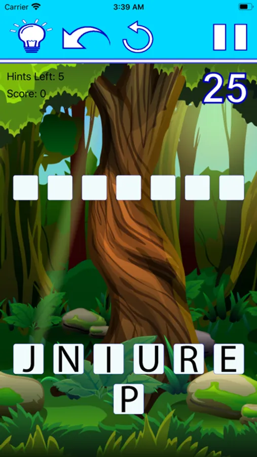Hoho I’m so glad you asked!! Here’s how it works: tap the mixed up letters on the screen in the right order to form the hidden word! Each letter is worth 20 points and each hint you use will cost you 20 points, so try not to use them! The first word you get will give you 30 seconds to solve it and for every consecutive word solved, the timer will start out 2 seconds shorter down to a minimum of 4 seconds(You really got to be quick!).