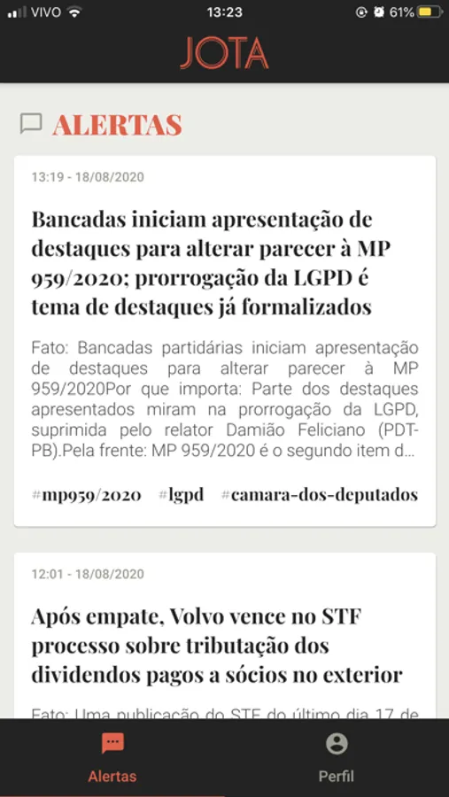 Com o nosso aplicativo, você tem acesso a todos os seus alertas em um só lugar. Fique por dentro dos bastidores dos Três Poderes e das notícias mais relevantes para você e para a sua empresa. Nossos repórteres estão em tribunais, palácios, gabinetes e plenários para descomplicar e antecipar as movimentações mais importantes de Tributos, Poder e Saúde.