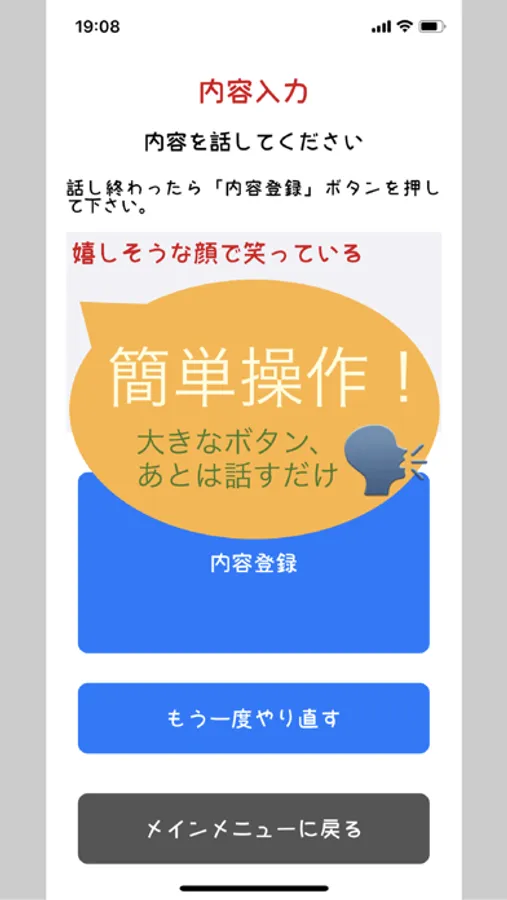 3.「内容入力開始ボタン」をタップし、内容を話します。