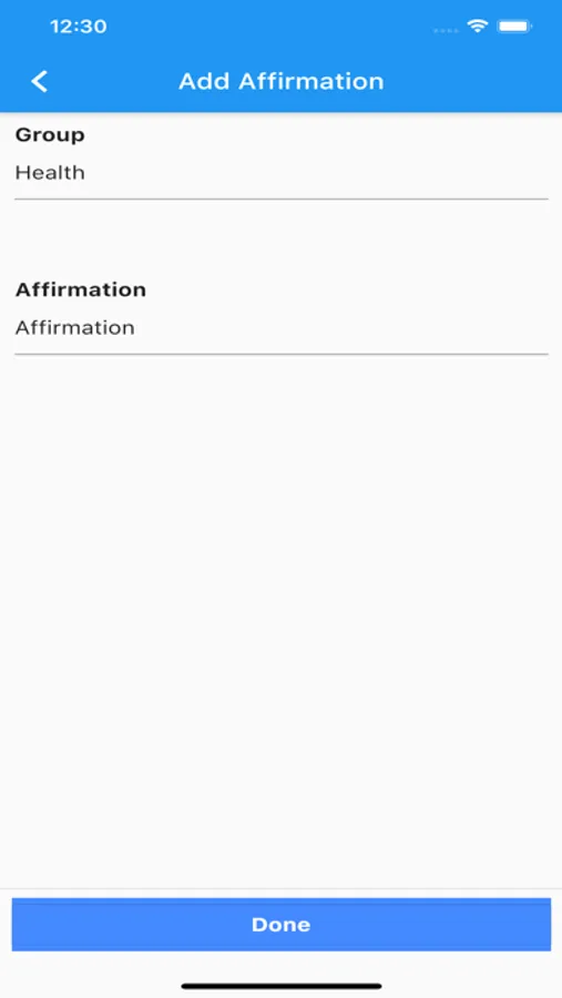 When you add or edit an affirmation, a menu will show up for you to choose which existing group to use by simply tapping on the group name you want; but type in a new name, and a new group is created for you and the affirmation is added to it. Too easy.