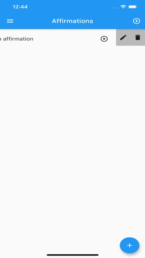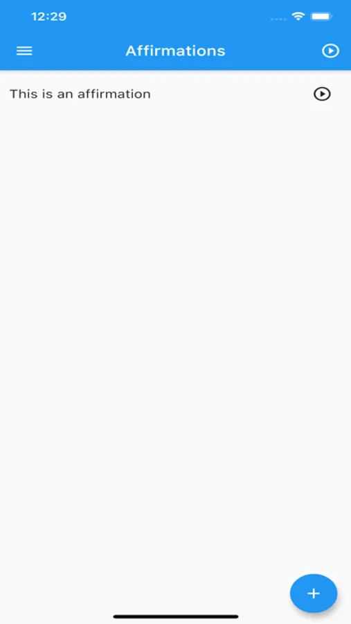 Short press on the play button in the app bar, and all affirmations are repeated once. Long press and it gets repeated forever. Also, short press on an individual affirmation and it gets played once, long press on the affirmation and that single affirmation is repeated forever. Tap the icon when a pause symbol is showing, and it stops speaking. Remarkable.
