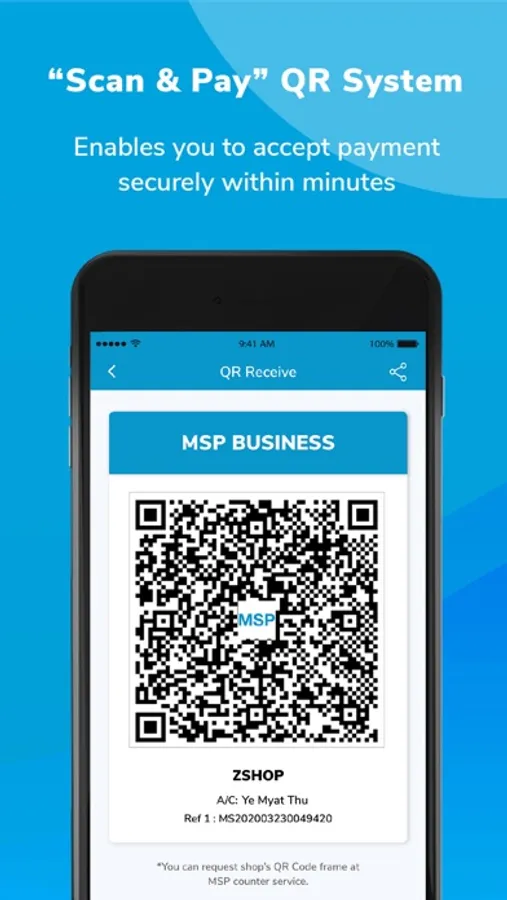 Scan and Pay QR system enables you to accept payment securely within minutes.