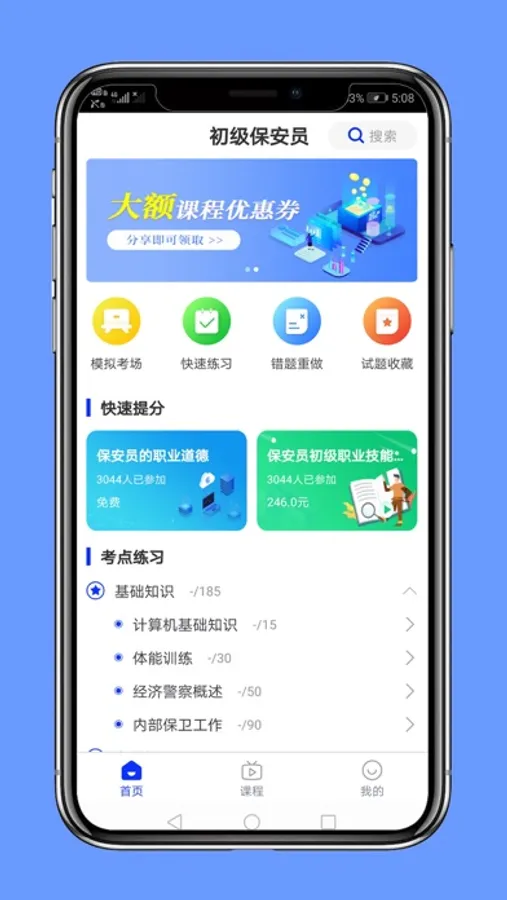 这次保安员题库APP为了感谢新老用户对平台的支持,有大额的优惠券活动,用以购买产品,能省下不少钱呢。