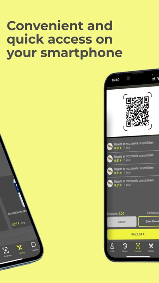 Scan the QR code to enter the store or open a micromarket. Select the product you like, scan the code, select the appropriate payment type and make an in-app purchase.
