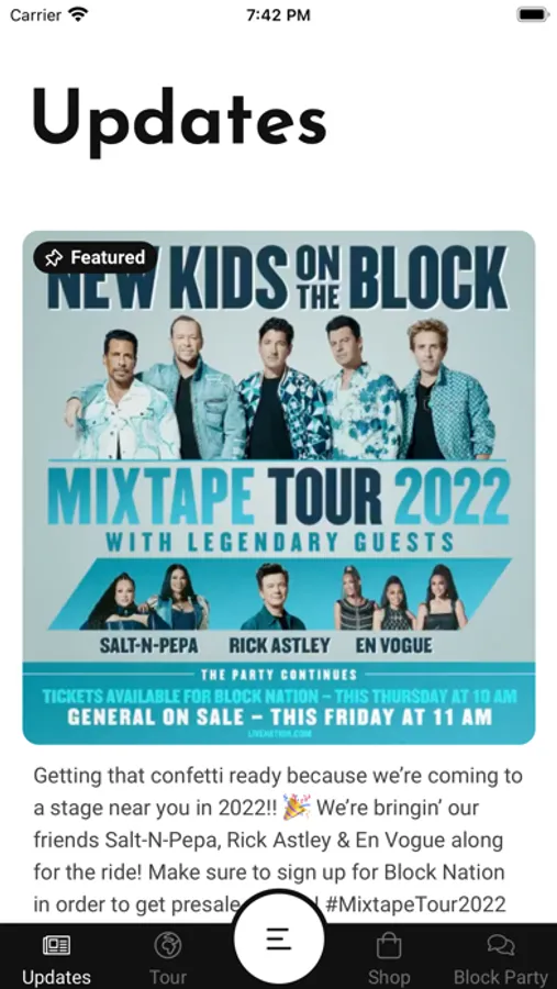 The NKOTB App: Your one-stop shop for all things NKOTB & Block Nation! Sign up now to receive push notifications, first access to tickets, and exclusive content.