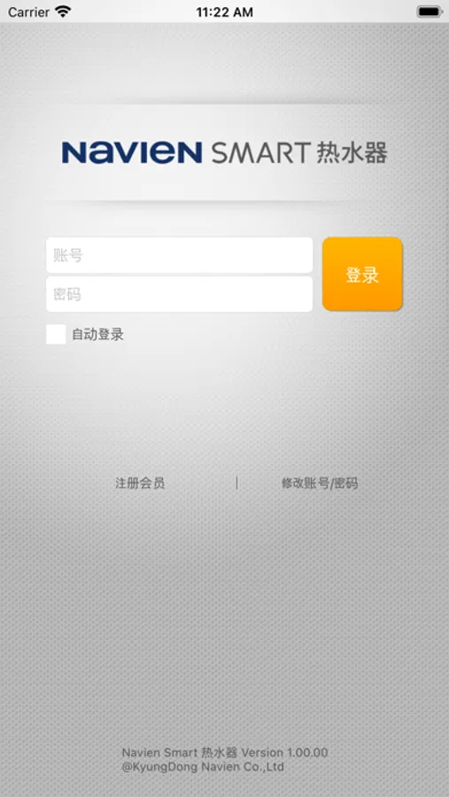 为了使用NAVIEN Smart Tok 热水器 APP 功能,首先需要注册会员和登录产品.