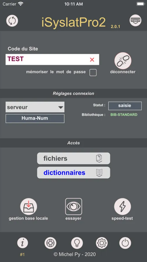 Le logiciel iSyslatPro2 est un utilitaire professionnel destiné à enregistrer des informations sur les fouilles archéologiques gérées sous système Syslat. Il s’agit d’un outil complémentaire du logiciel Syslat-Terminal qui permet d'accéder avec un iPhone ou un iPad aux bases de données Syslat préalablement implantées sur les serveurs d'Huma-Num ou sur tout autre serveur. Il est également possible d'importer des bases de données depuis le serveur pour les consulter ou les modifier en configuration locale (y compris hors connexion).