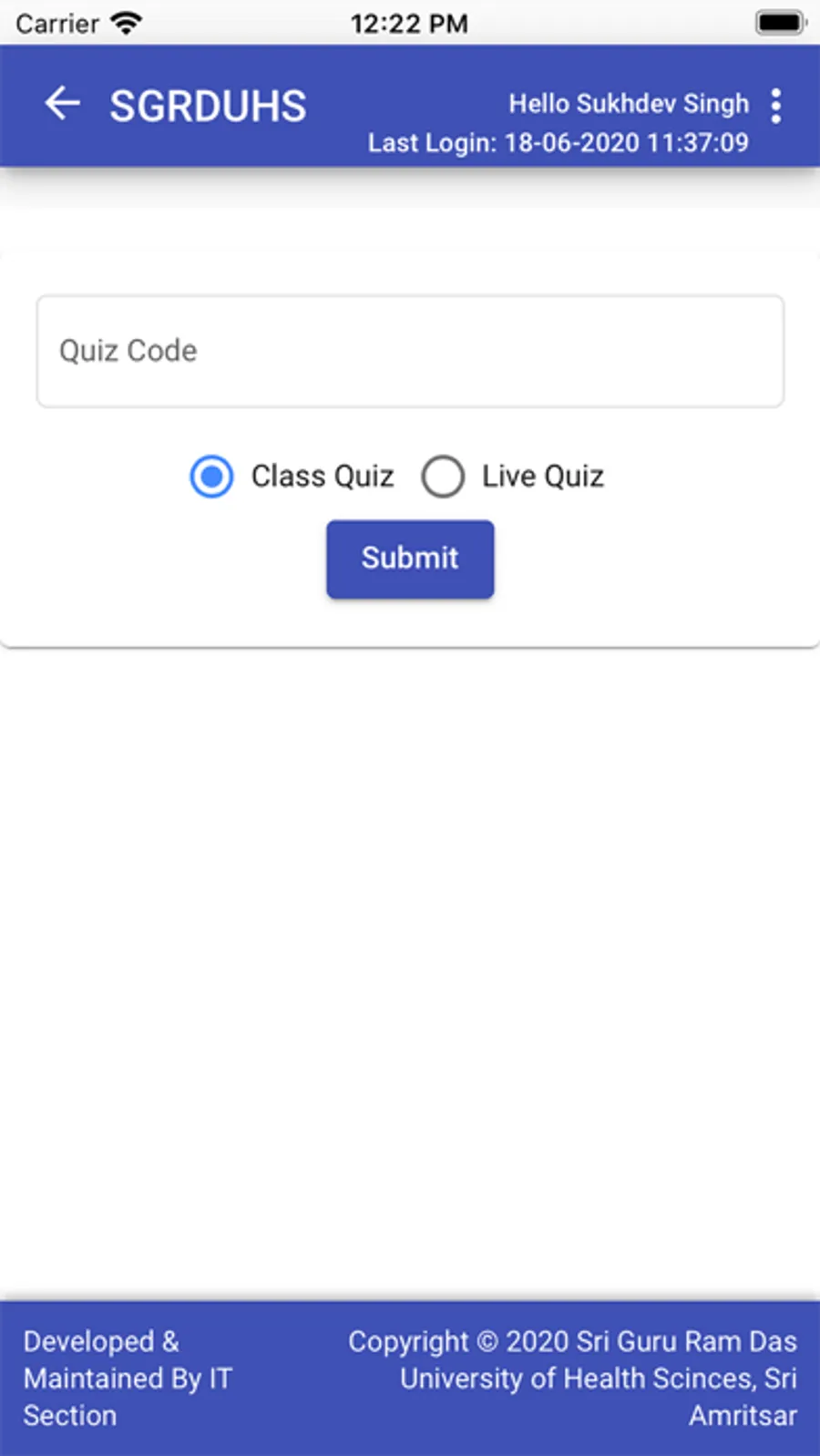 Official quiz app of Sri Guru Ram Das University of Health Sciences, Sri Amritsar. Built to evaluate student performance.
