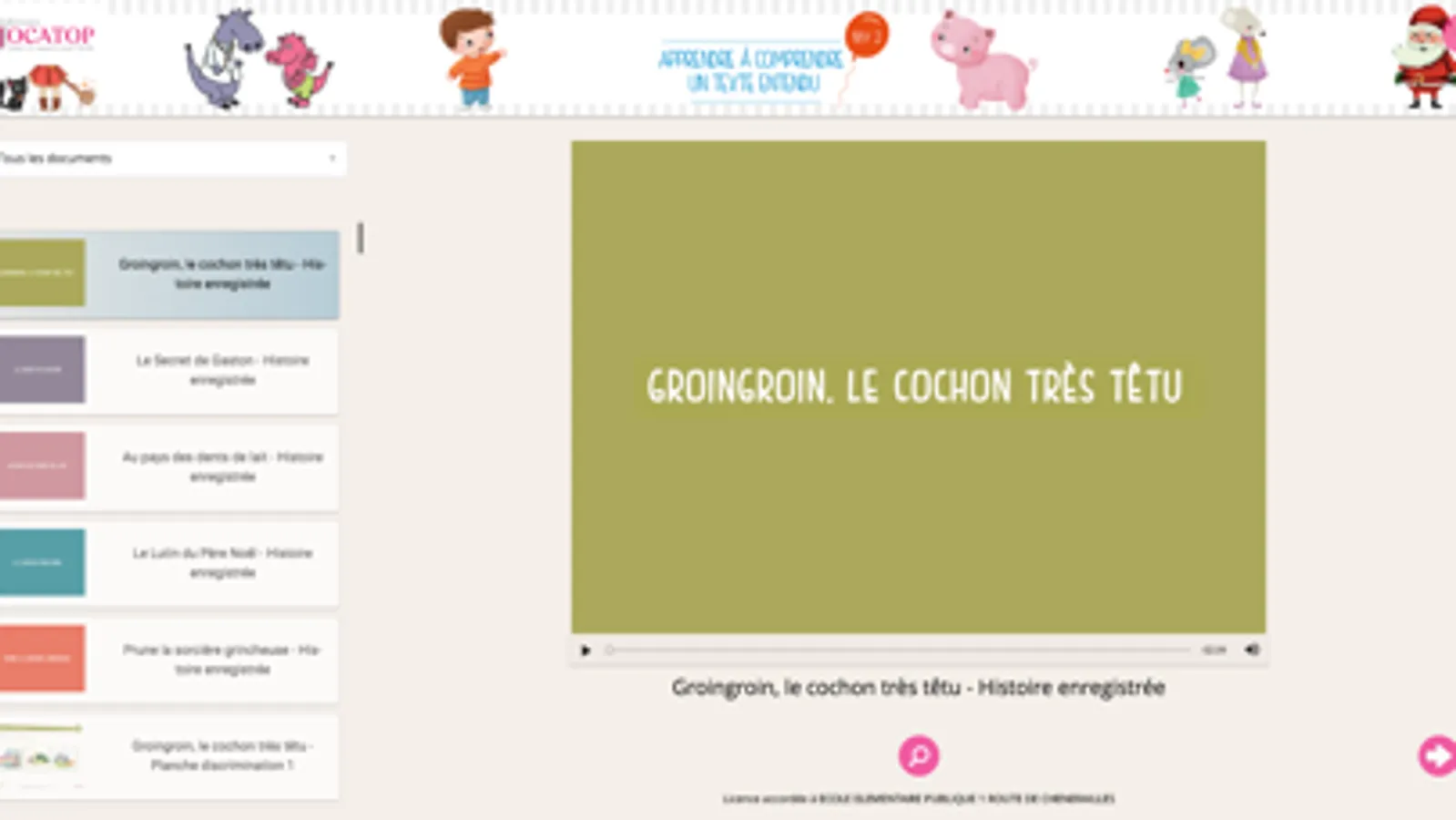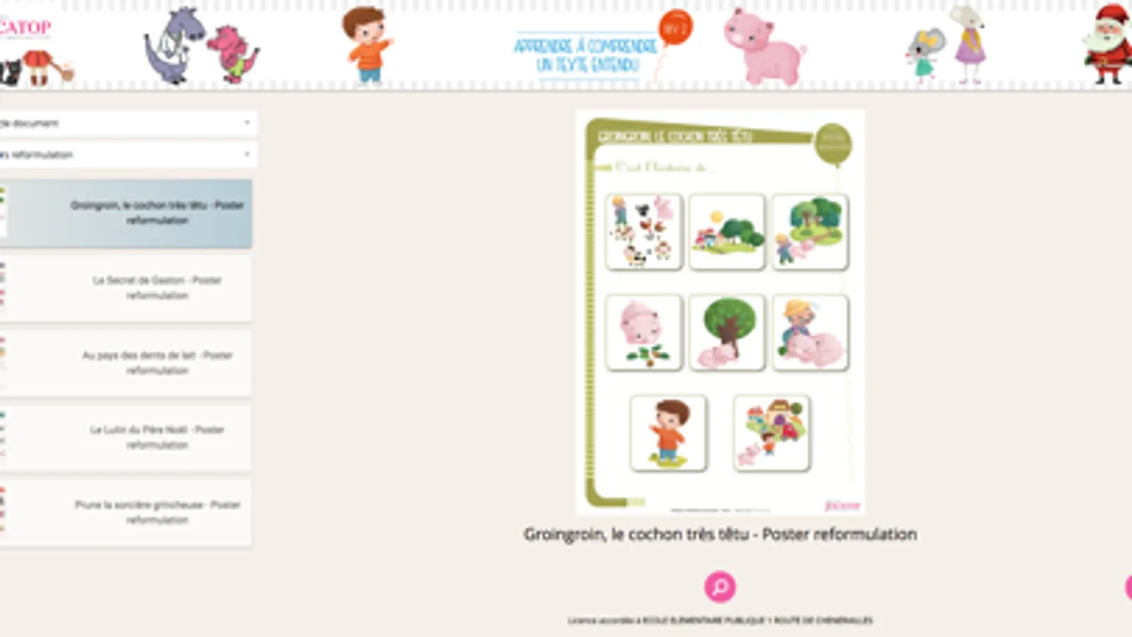 La seconde partie s'appuie sur 5 histoires originales qui seront lues par l'adulte. Chaque histoire est accompagnée d'outils (planches de discrimination, planches de reformulation, cartes personnages) pour aider l'enfant à aller vers la compréhension du texte.