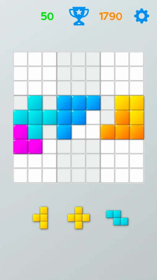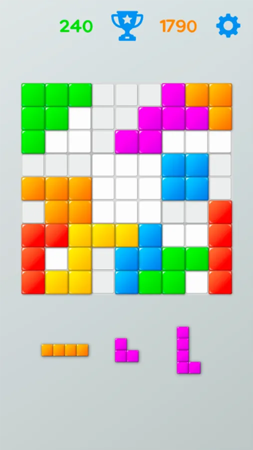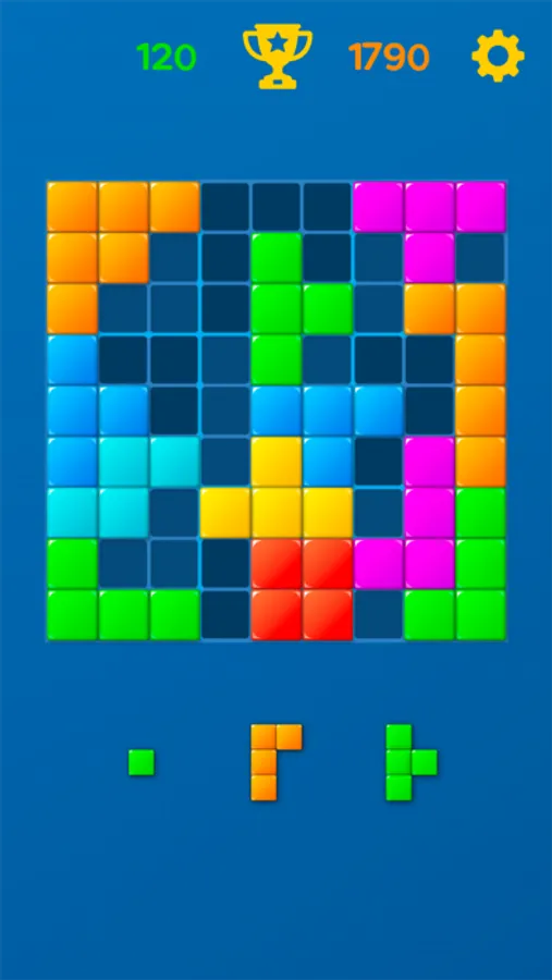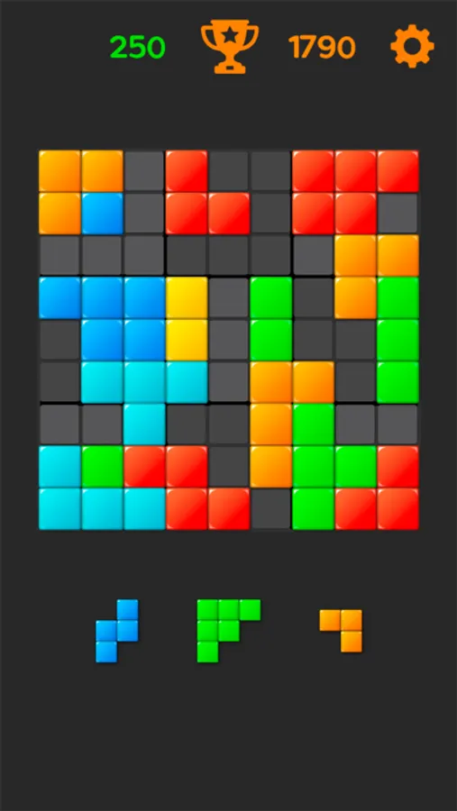 Block puzzle with sudoku figures. The game board is a big grid with 9x9 places.
