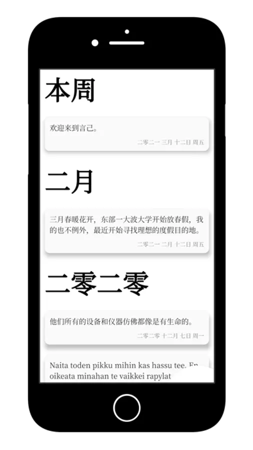 言己 是一款遵循简约风格的日记应用。选择你喜欢的字体和当前的天气,记录下你的所思所想。