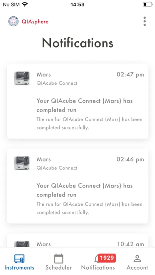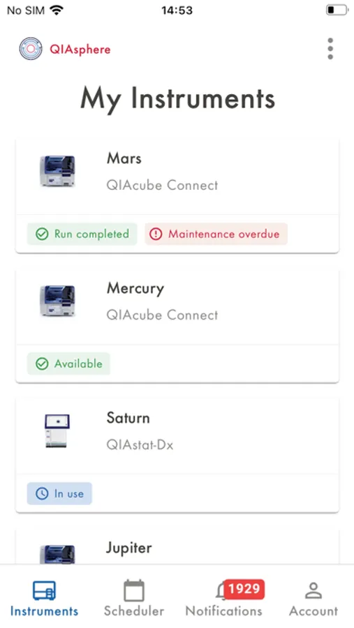 With QIAsphere App, you can monitor your QIAsphere-ready instruments remotely, in real-time: