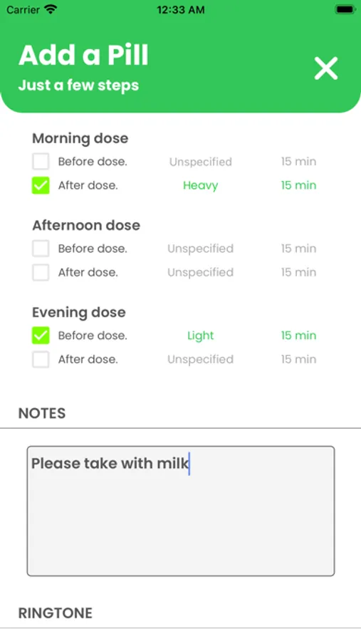 You will be able to type a pill name, enter the time slots (morning, noon, and evening), specify how many pills you take, and choose a pill icon. Very intuitive and simple flow. You will receive a push notification when it’s time for you to take the pill. After you’ve taken the pill, you can tap on the pill reminder and this will show you that the pill was taken. Even if you by accident tapped on any pill reminder, the app will still send you a notification.
