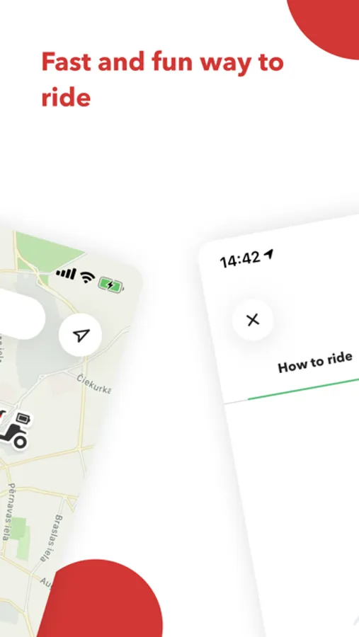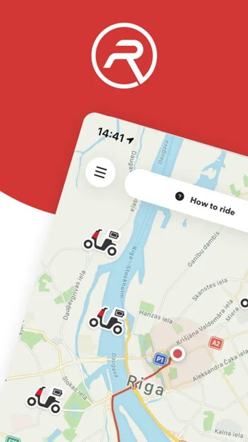 Download the RIDE App from your phone's App Store. When it is downloaded, read the introduction with a short guide and register to be able to drive!